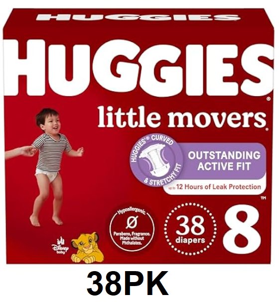 38PK HUGGIES Little Movers Baby Diapers - SIZE 8 - Disney