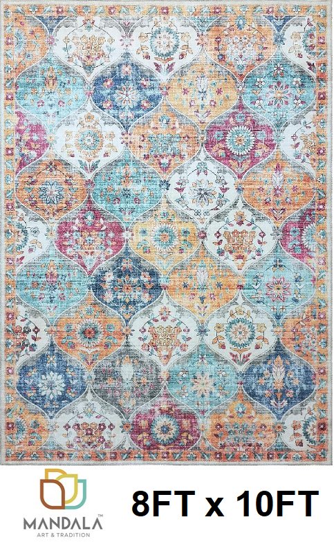 Mandala modern washable indoor area rug -8FT X 10ft - orange/BLUE/multi - (model: astra4721b1-80100)