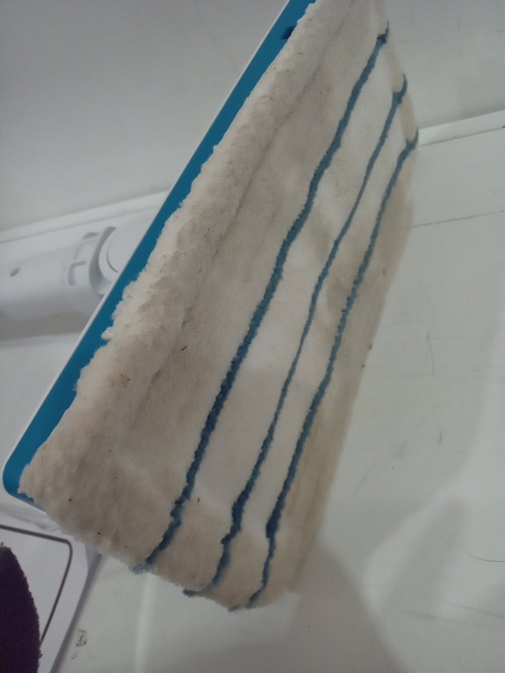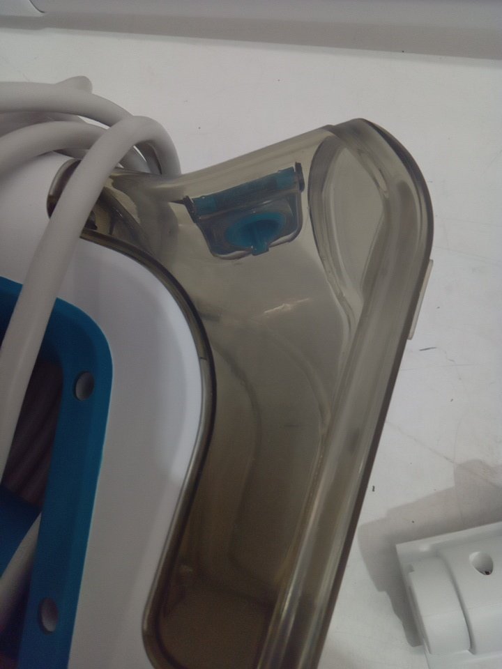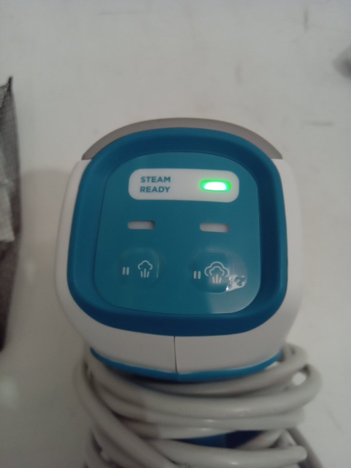 tested for power. appears that the steamer has some water in the tank and pads have some discoloration from use (see photo)