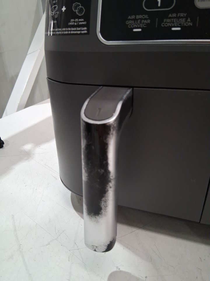 note there is light oil residue in the left basket and the handle if faded from previous use