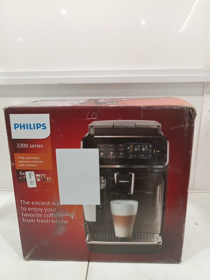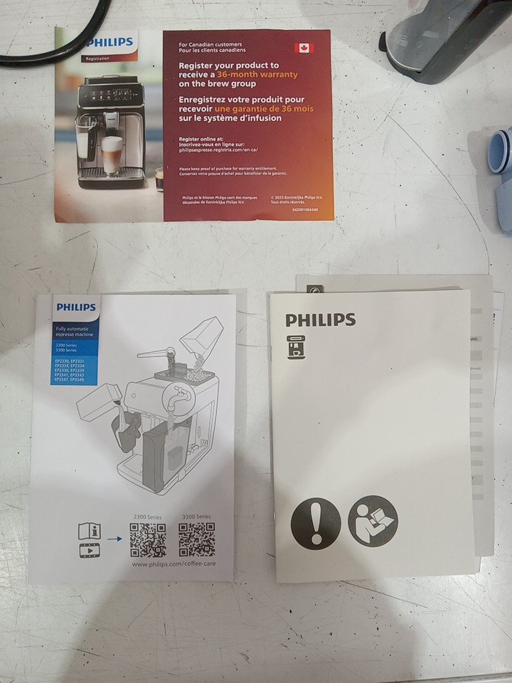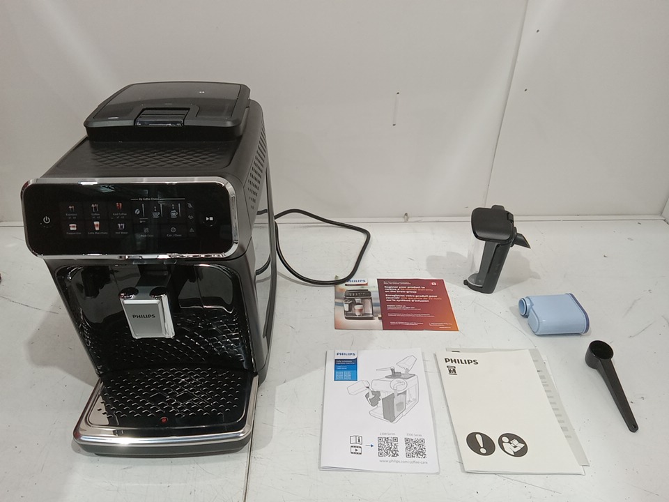 Please note that all of the cleaning accessories (The essential cleaning accessories for the Philips LatteGo 3300 are the AquaClean filter, Philips descaler, and coffee oil remover tablets) are missing from the original packaging. There are coffee residue on the grinder and water stains on the water tank from previous use. Tested for basic power only. (Please see photos) This item will not be eligible for our warranty unless the machine was descaled & cleaned using the manufacturer's instructions. If you require additional time for our warranty in order to clean these machines, please reach out to us before your specified warranty deadline. Due to the high sensitivity and frequent upkeep of operation on these units, additional cleaning may be required. If not descaled with model specific cleaning product, the units may become clogged and will cause potential operational issues. Please refer to the manufacturers operations manual for detailed cleaning instructions.