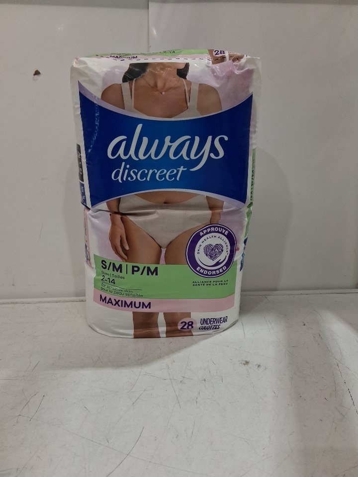 28pk women's always discreet for sensitive skin underwear - small/medium (sizes 2-14) - maximum absorbency