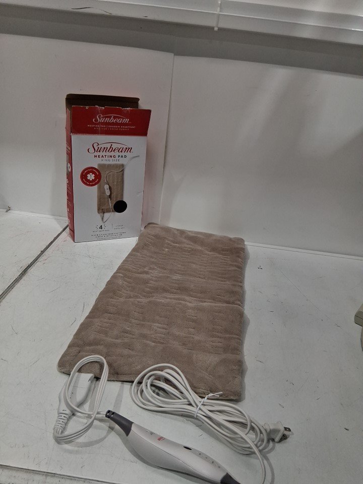 Sunbeam premium plush 4-Heat setting king size heating pad - 12" X 24" - beige (model: 538-750-cnr)