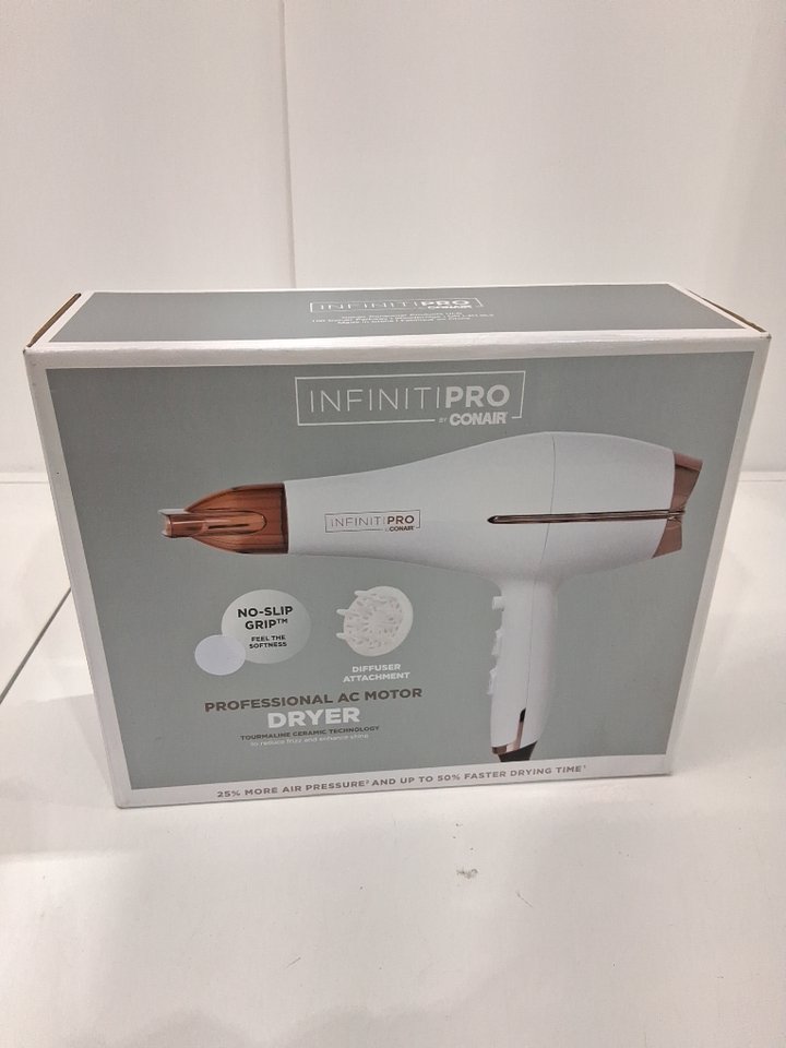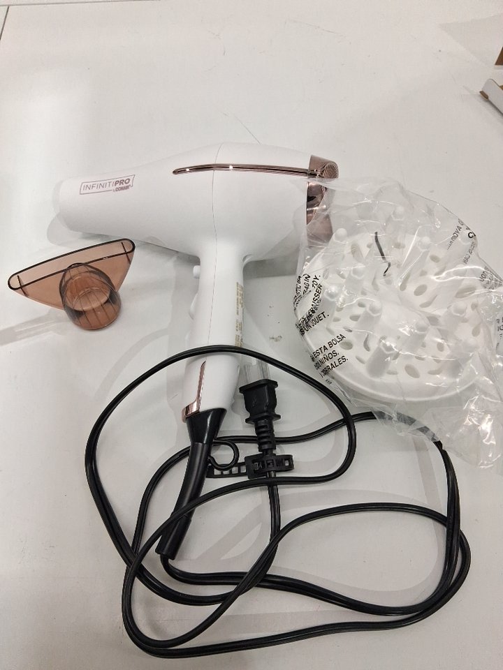 INFINITIPRO BY CONAIR CERAMIC TOURMANLINE SOFT TOUCH HAIR BLOW DRYER WITH DIFFUSER & CONCENTRATOR - 1875W - WHITE (MODEL: 362NC)