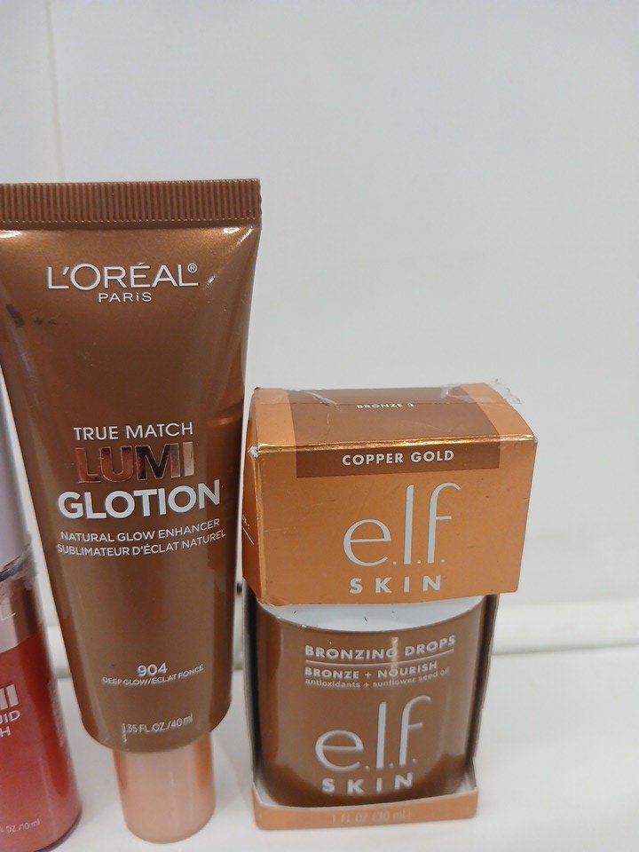 5 ASSORTED MAKEUP - ASSORTED BRANDS - LIPSTICK/ glow enhancer/ bronzing drops