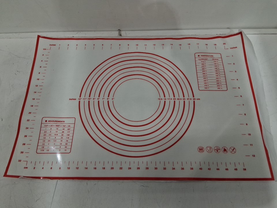 SILICONE PASTRY MAT WITH MEASUREMENTS FOR BAKING DOUGH ROLLING FONDANT KNEADING NON-STICK NON-SLIP 15.7INCH X 23.6INCH- LARGE - WHITE RED