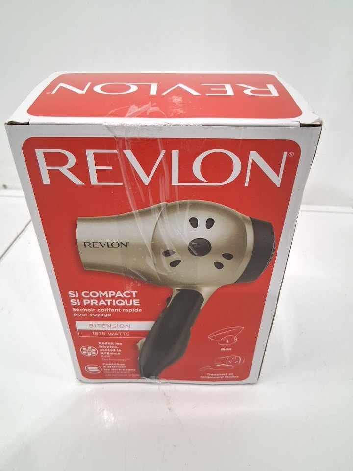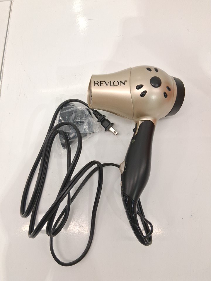 REVLON FAST DRY CERAMIC IONIC TECHNOLOGY FOLDING COMPACT TRAVEL HAIR DRYER WITH CONCENTRATOR - 1875W - BLACK/GOLD (MODEL: RVDR5005F)