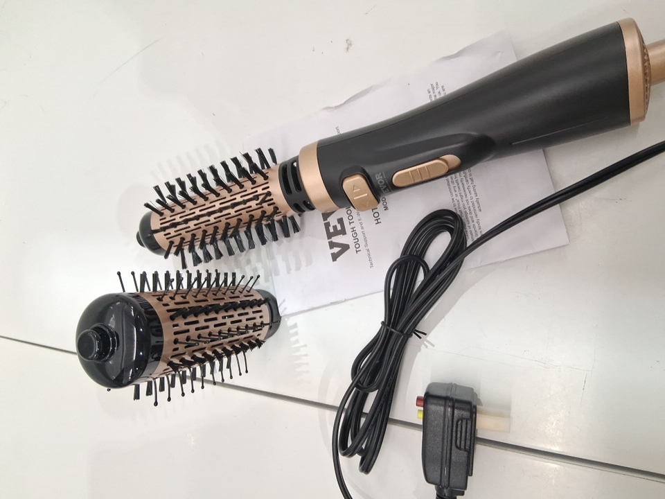 vevor rotating hot air hair styling brush with extra attachment - gold/black (model: ct-508b)