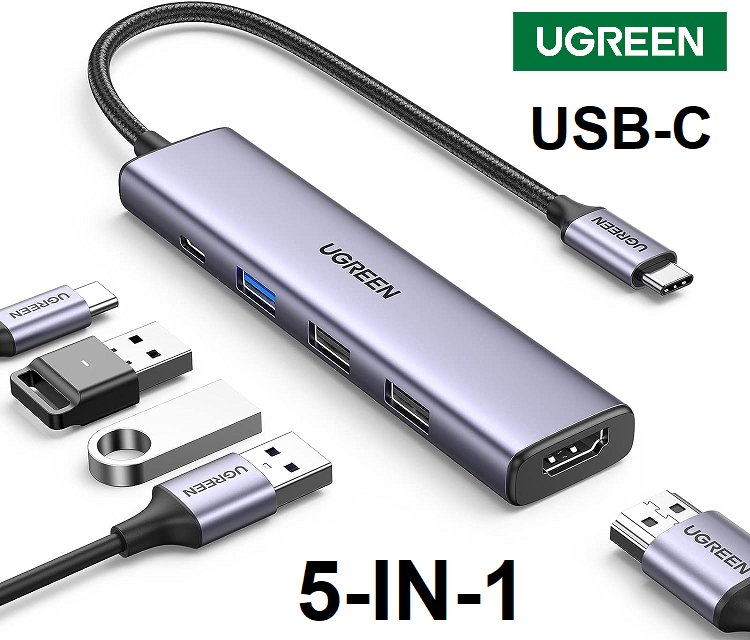 ugreen 5-in-1 4k usb-c adapter - metallic black