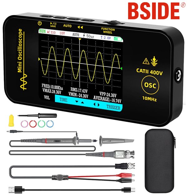 BSIDE Handheld Portable Automotive Oscilloscope with carrying case - 10MHz Bandwidth - 3.2'' - black (model: OT3)