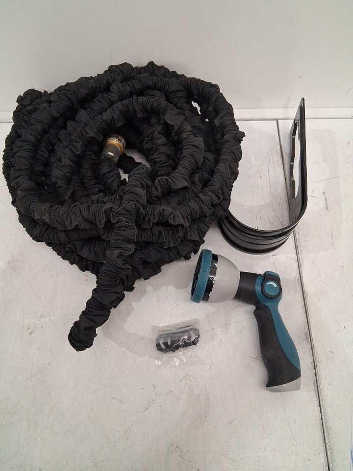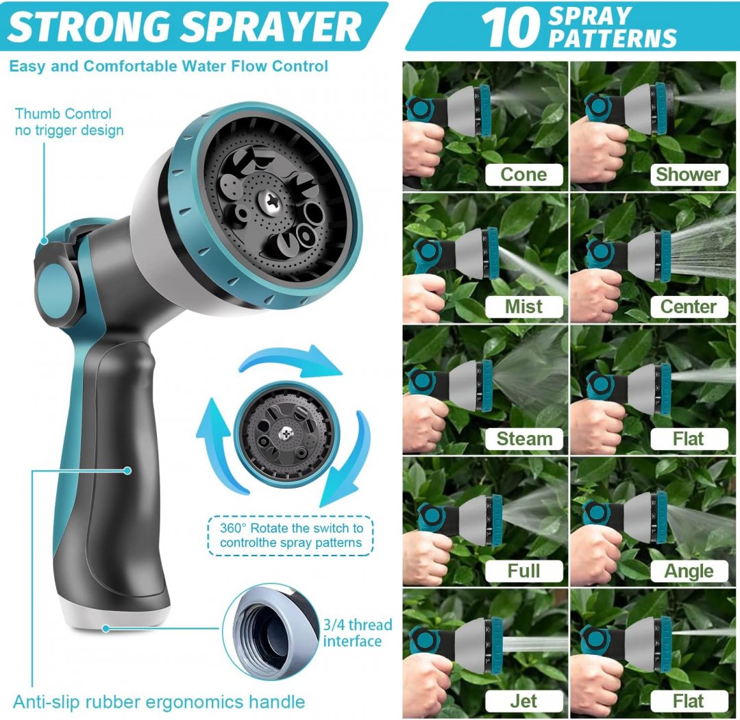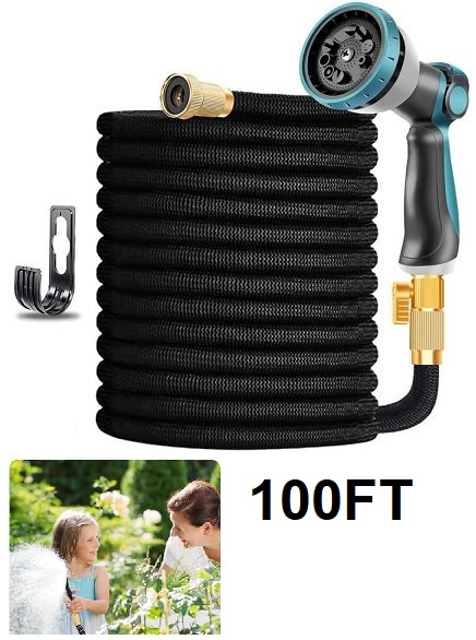 Aunfles expandable Water Hose with 10 Function Sprayer Nozzle - No-Kink- 100ft - Black/Blue (MODEL:‎YJ-GJ2024061802-02)