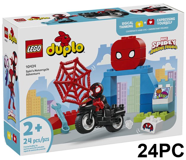24PC LEGO DUPLO Marvel Spin's Motorcycle Adventure Spidey Fantasy Playset Motorcycle Toy with Wheels - MULTICOLOUR (MODEL: 10424)