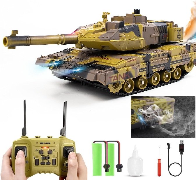 hitish remote control army tank with lights, sounds and smoke - army beige
