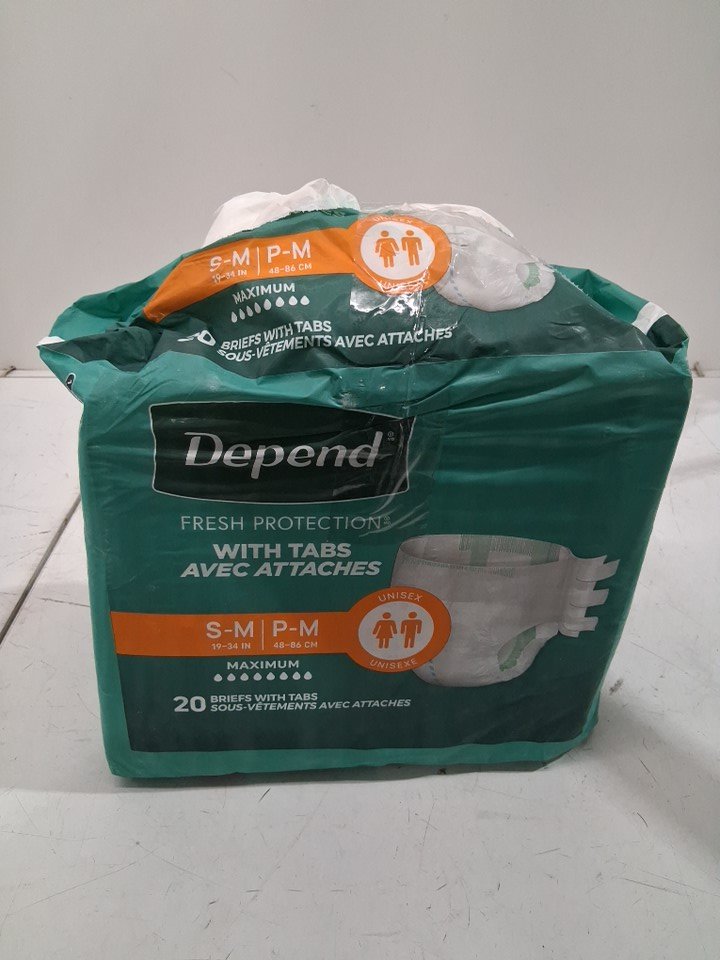 20PK adults unisex DEPENDS fresh PROTECTION With TABS - MAXIMUM BRIEFS - SMALL/medium - WHITE