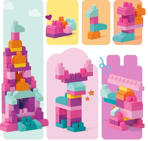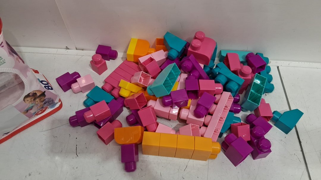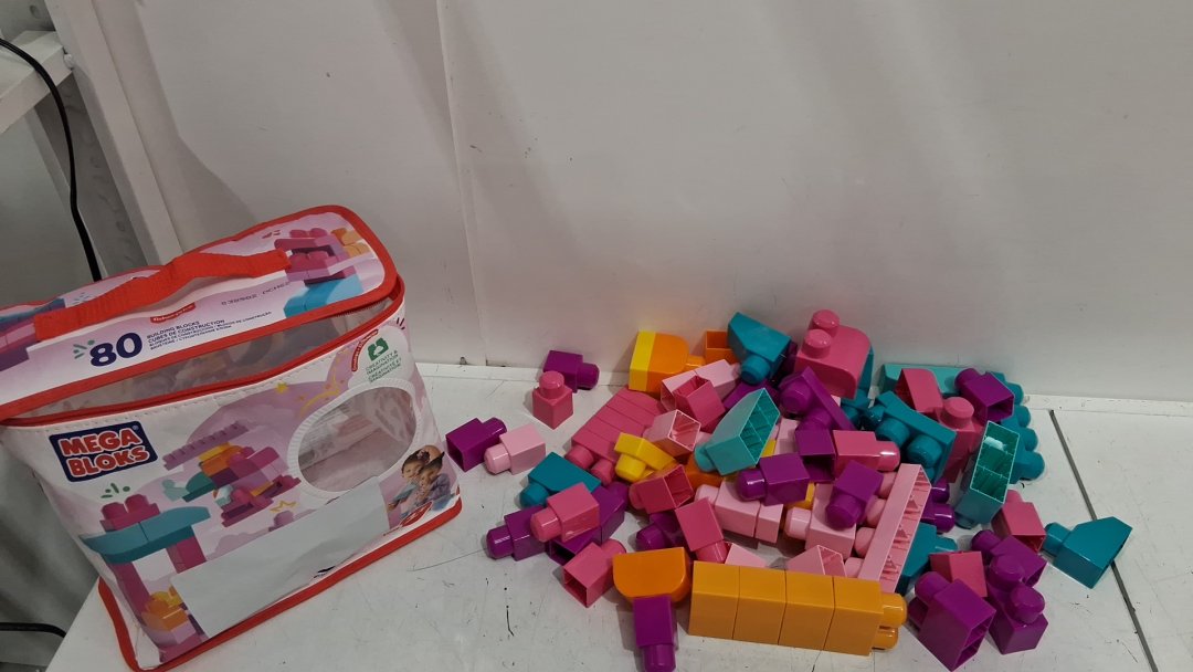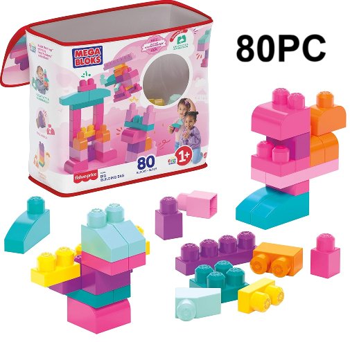 80PC MEGA BLOKS FISHER-PRICE TOY BLOCKS RED BIG BUILDING BAG WITH STORAGE (MODEL: DCH62)
