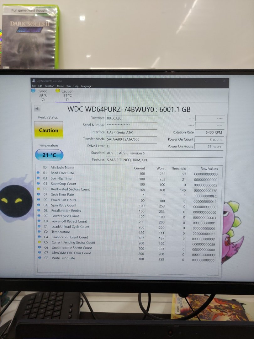 Item arrived with 25 hours powered on, this makes the item considered lightly used by our standards. additionally this item arrived with caution markers in the reallocated sectors count ¤t pending sector count. this may effect use in the future but does not appear to effect function. please be aware of this prior to placing bids.
