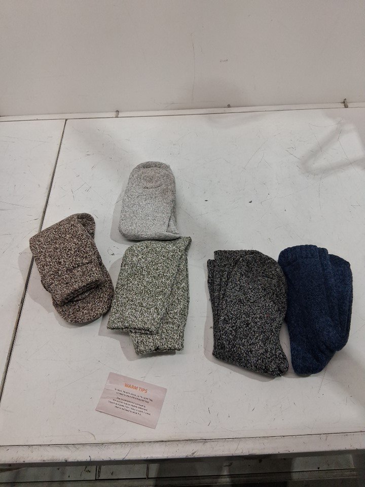 5pk soft breathable and thick and warm merino wool crew socks - size 6 -13 - assorted colors