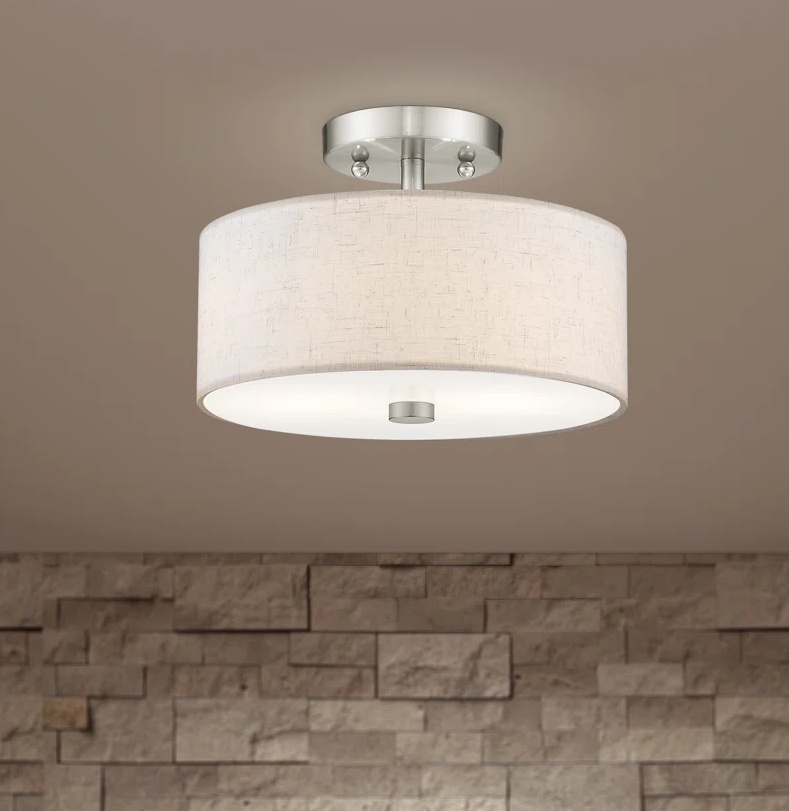 Flaire Fabric Semi Flush Mount - 7.5" x 11" x 11" - BRUSHED NICKEL