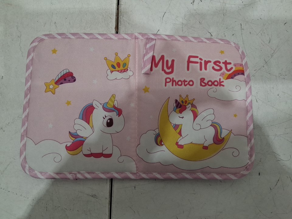 LANPN BABY'S "MY FIRST PHOTO BOOK" WITH STICKERS - HOLDS 17 5" X 7" PHOTOS - PINK UNICORN