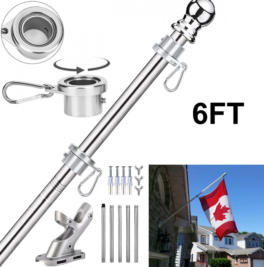 heavy duty Flag pole for home exterior with mounting bracket - 6FT - chrome