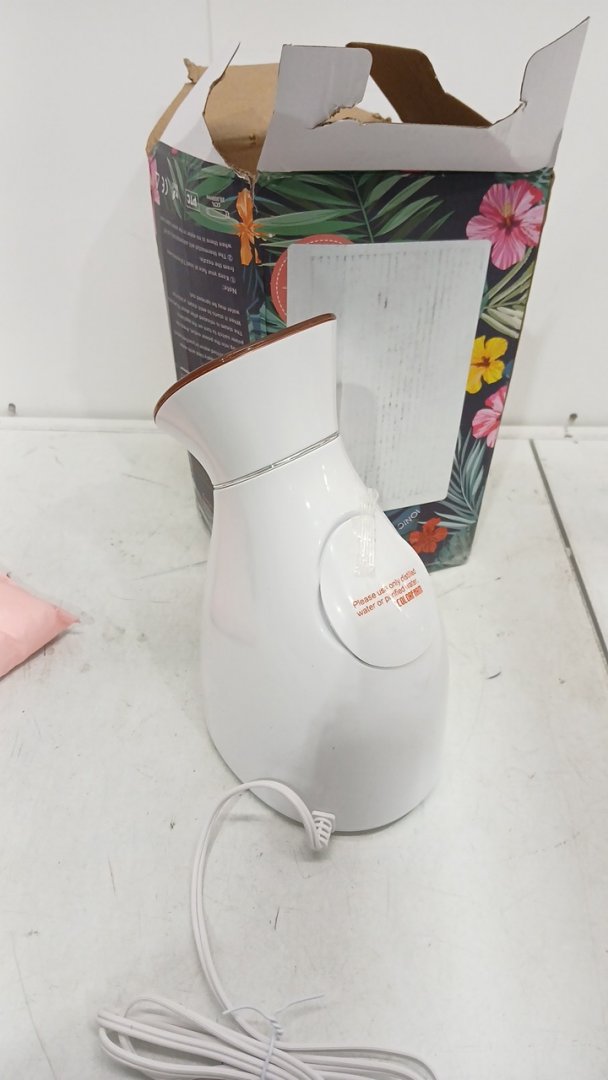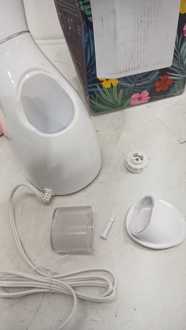 the water reservoir is cracked as well as we are missing the accessories and there is some markings and a scent from previous use (tested and working)