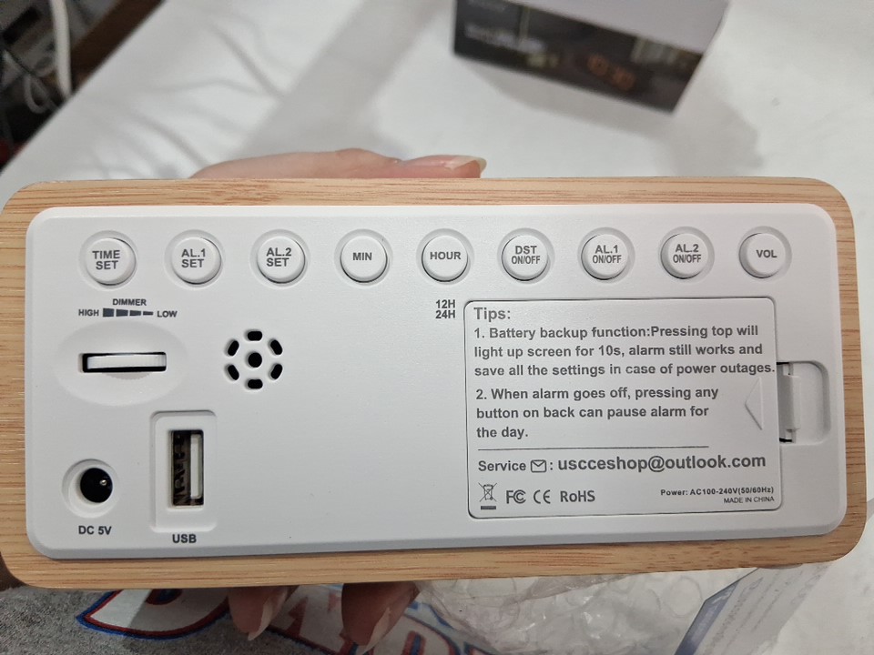 uscce Dimmable Dual Alarm Wooden Digital Alarm Clock with large numbers - bamboo/white digits