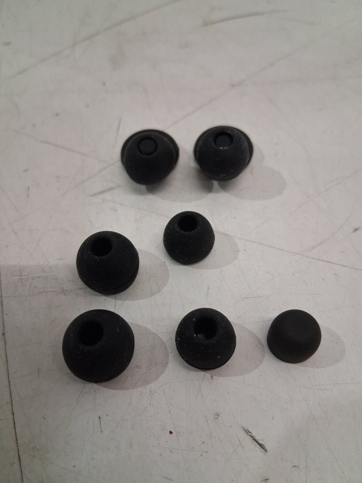 Please note: • One of the smallest size tips is missing. • The earplugs show signs of previous use with some debris on the tips, see photos.