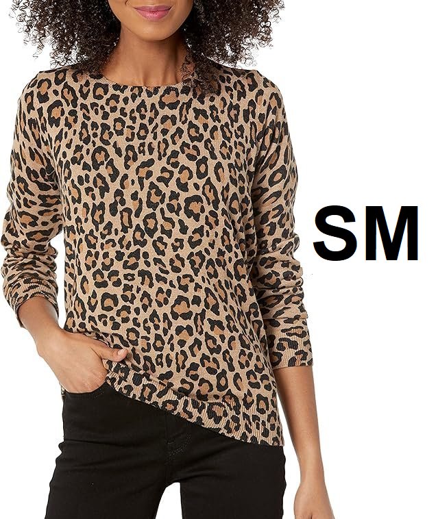 WOMEN'S Amazon Essentials Lightweight Crewneck Sweater - small - CHEETAH PRINT