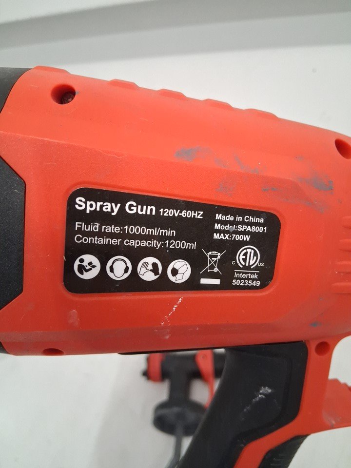 Missing 1200 mL Paint cannister. Grey paint stains indicate prior short-term use. (See photos)