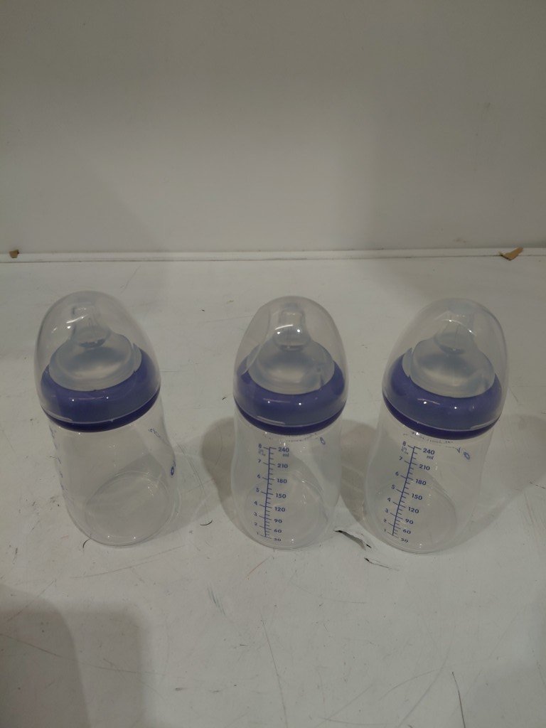 3pk lansinoh feeding bottles - 8oz - medium 3m+ - clear/purple