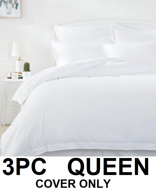 3PC Amazon Basics Light-Weight Microfiber Duvet Cover Set - Full/Queen, Bright White