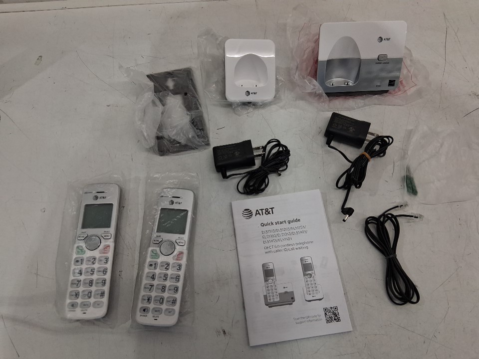 AT&T DECT 6.0 2-HANDSET CORDLESS PHONES WITH CALLER ID & HANDSET SPEAKERPHONE - WHITE/SILVER (MODEL: EL51203)