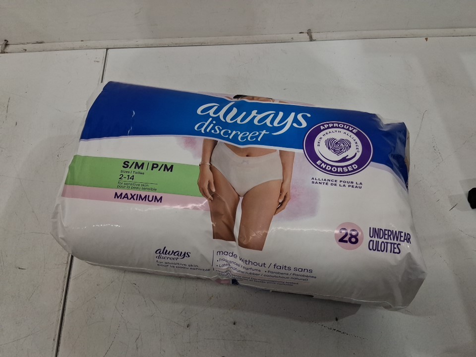 28pk women's always discreet for sensitive skin underwear - small/medium (sizes 2-14) - maximum absorbency