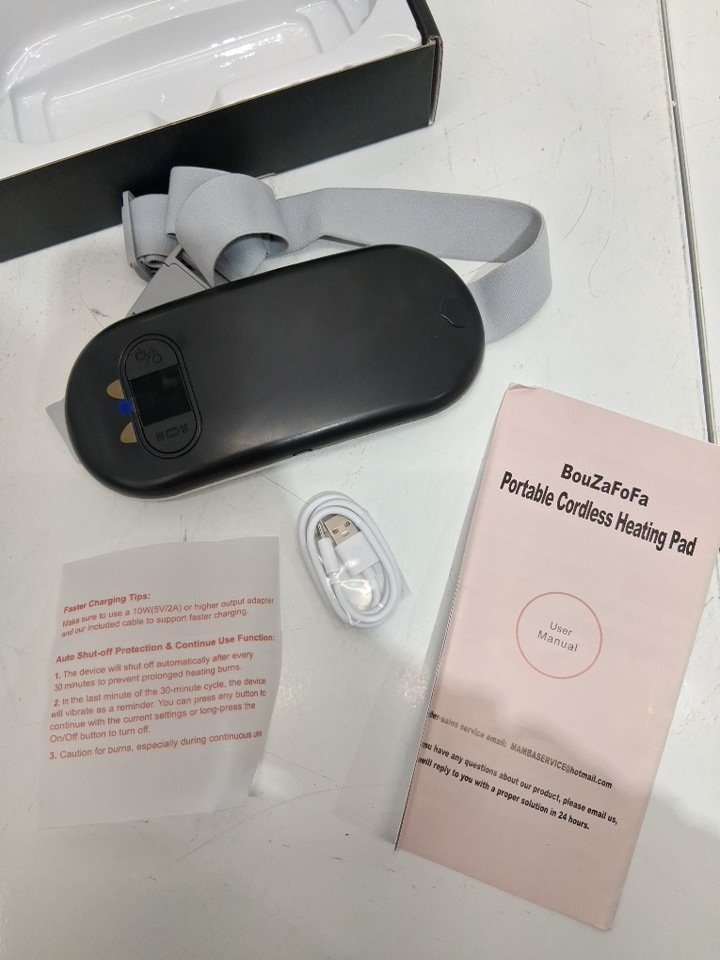 bouza PORTABLE CORDLESS HEATING PAD / BELT WITH 6 heat modes AND 6 massage modes - black/grey