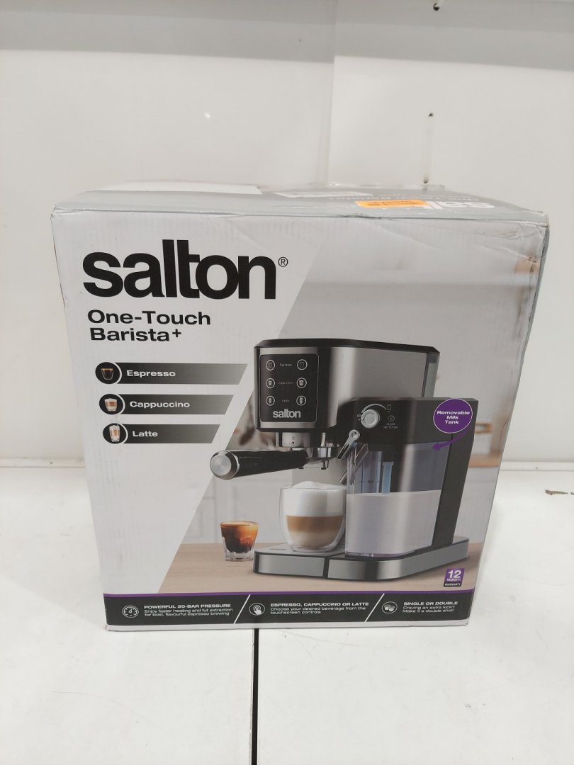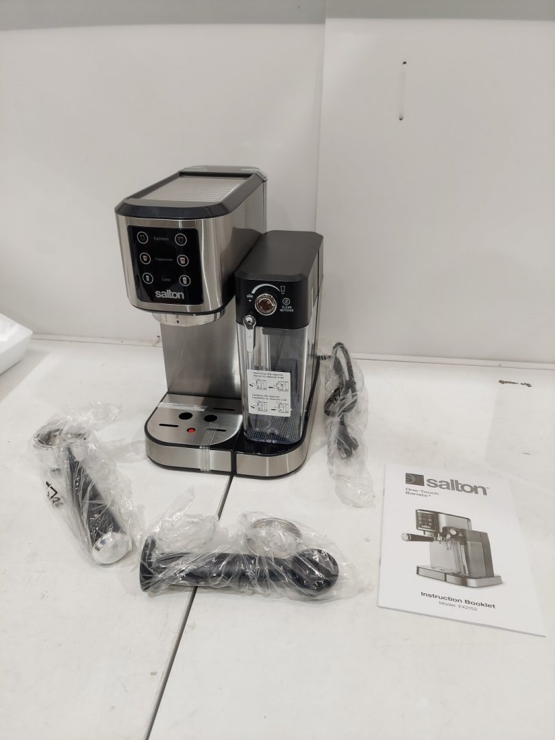 salton 3-in-1 espresso machine with milk frother - black/stainless steel (model: ex2152)