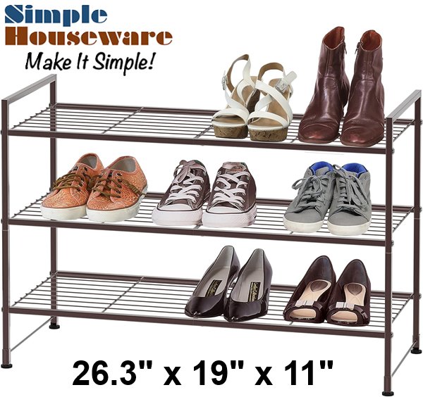 Simple Houseware 3-Tier Stackable Wired Grid Shoe Rack - 26.3" x 19" x 11" - BRONZE (model: BO-026-4)