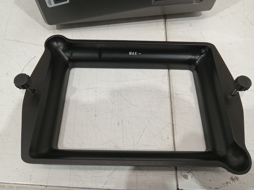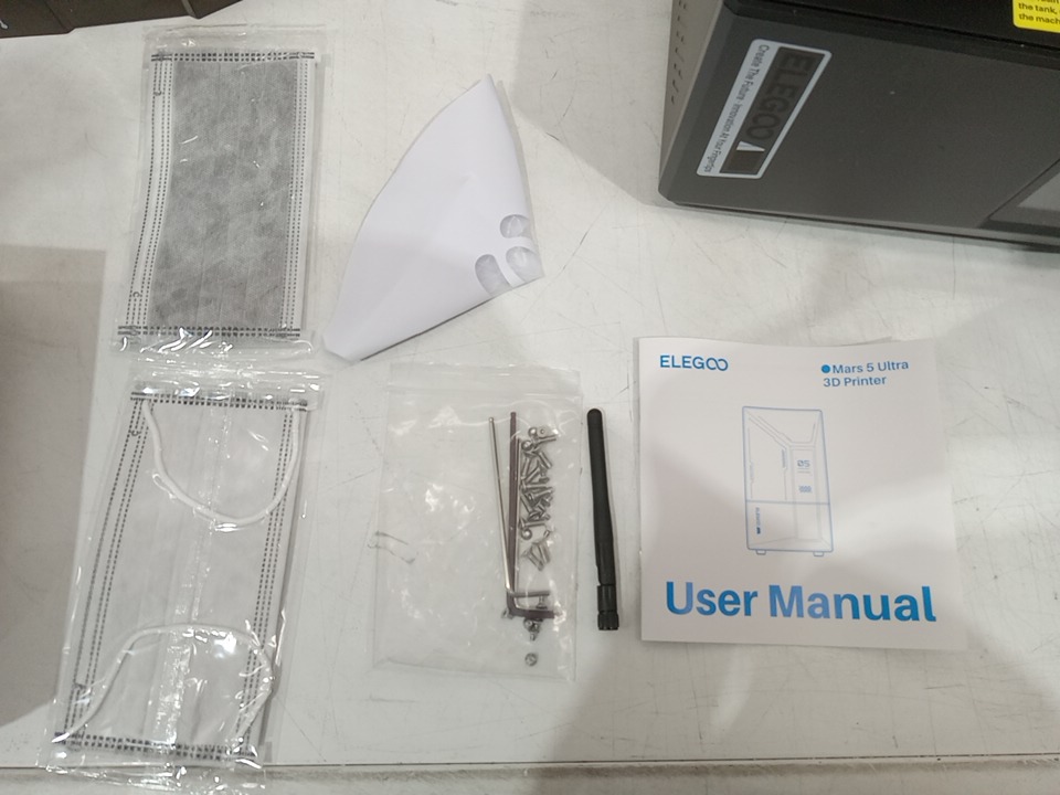 The back up screw, scraper, gloves are missing from the original packaging. There are resin stains on the tank and sides frame, there are minor scratch marks on the top cover frame. Tested for power, uv light and leveling. (Please see photos)
