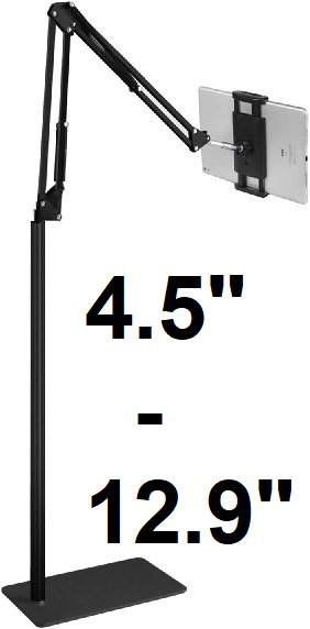 floor type mobile phone/tablet bracket with adjustable arm - 4.5" - 12.9" - black
