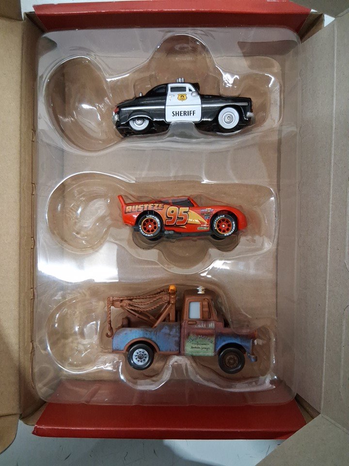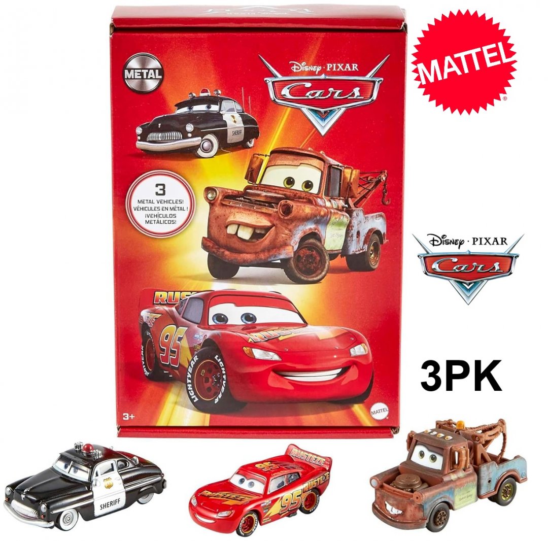3pk mattel disney pixar's Car's radiator Springs Die-cast Toy Cars & Trucks with Lightning McQueen, Mater & Sheriff - 1:55 scale (model: ‎HBW14)