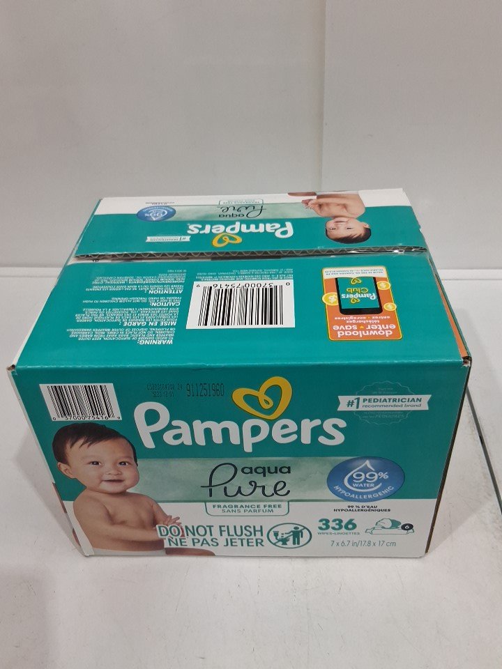 336PK baby PAMPERS aqua pure fragrance free hypoallergenic wipes - 6 packs in box