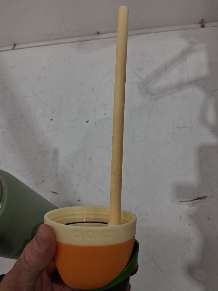 A minor unknown residue on the outside of the straw and there is also water that has been left inside the bottle. also some cosmetic scuffs on the surface of the bottle