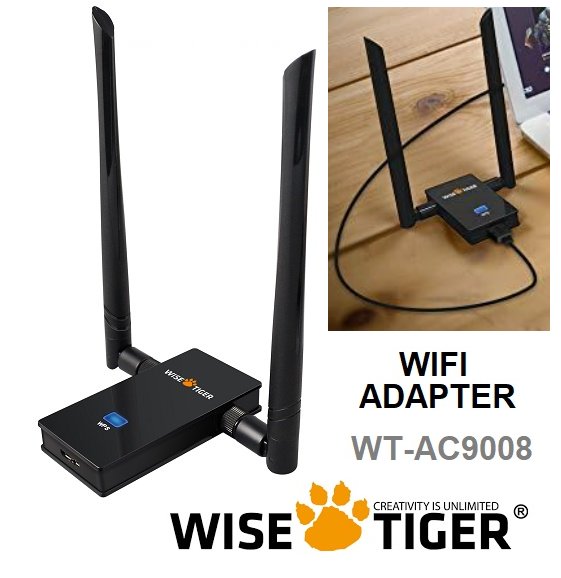 wisetiger 1200Mbps USB WiFi adapter - high-gain 5dBi antenna - compatible with Windows & Mac (model WT-AC9008)