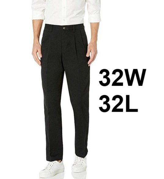 Mens Amazon Essentials Classic-Fit Wrinkle-Resistant Pleated Chino Pant - 30W x 29L - Black