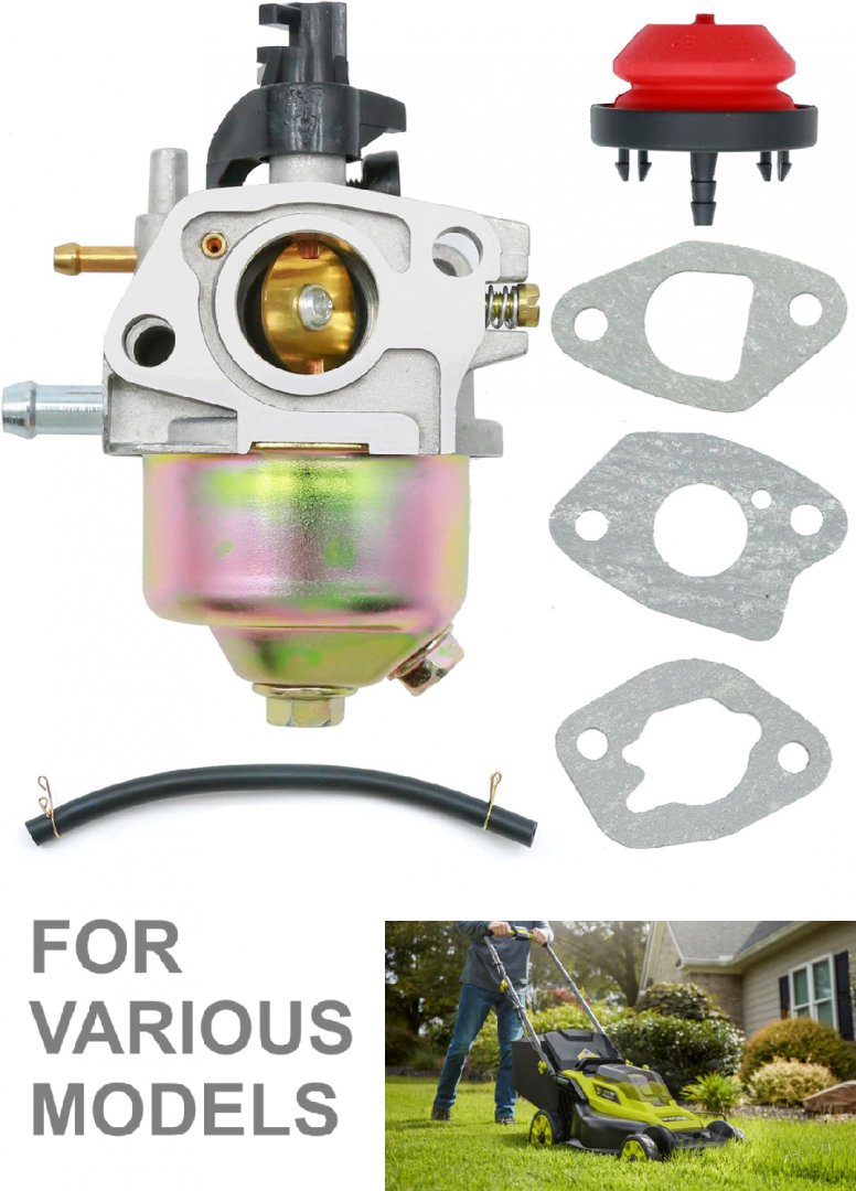 JUUDDENPARTS Carburetor Kit - REplacement for Ryobi Lawn Mower - MTD 2P70M0C/ 2P70M0D/ 2P70MU - 12AE18JA002/ 2AE46JA001/ 12AEB2JA001 - silver