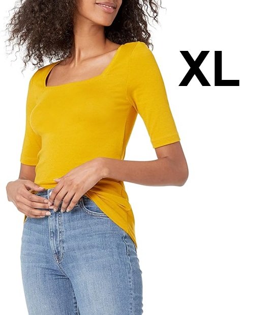 women's' Amazon Essentials Mid-Sleeve Square Neck T-Shirt - XL - Dark yellow (style: AEW30001SP21)