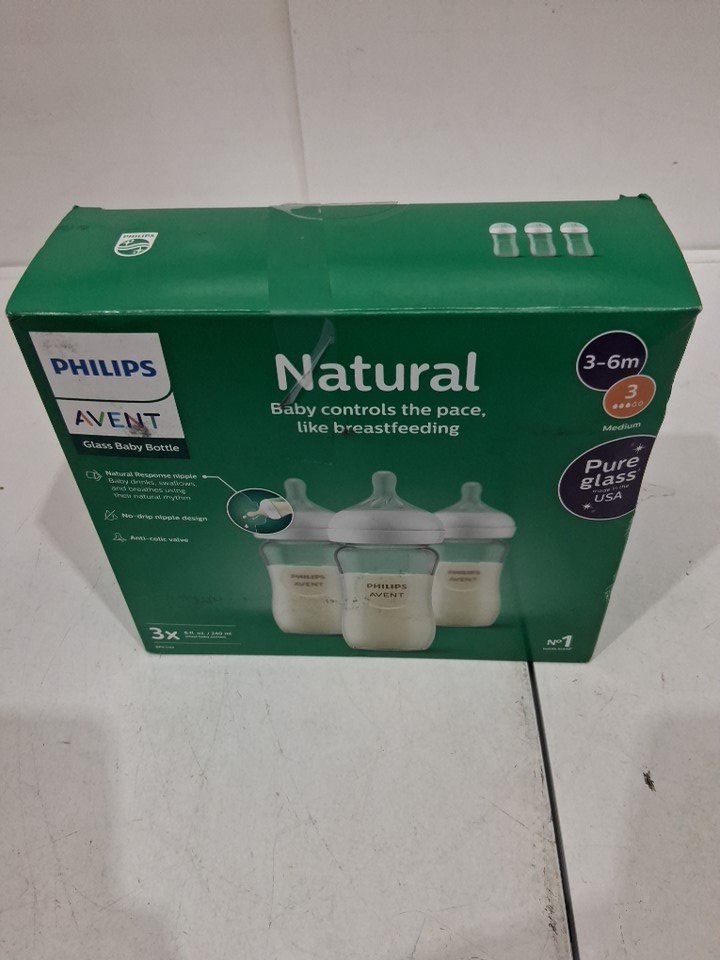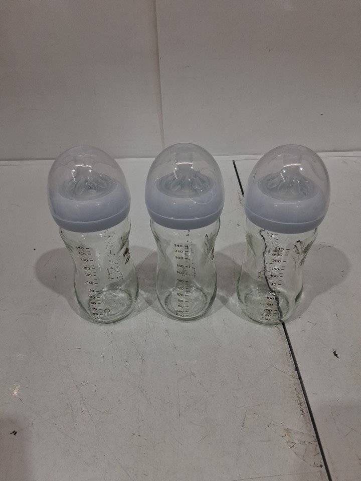 3PK PHILIPS Avent Natural Glass Baby Bottles with Natural Response Nipples - Medium Flow, Flow 3 - 8OZ - WHITE/CLEAR (model:‎ SCY913/03)