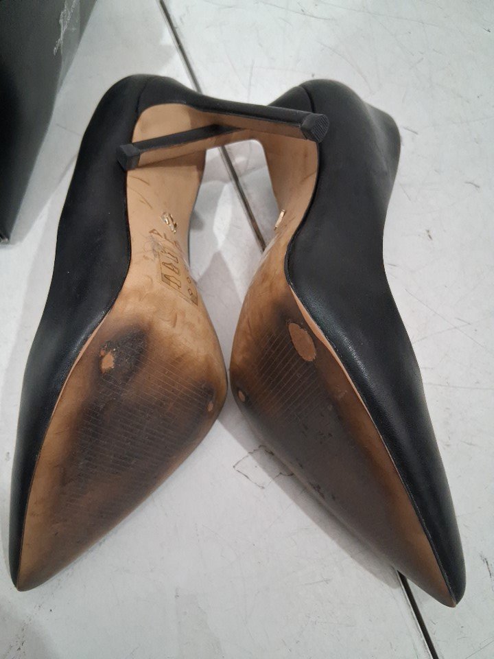 please note the bottoms of the shoes have markings from previous use. see photos.