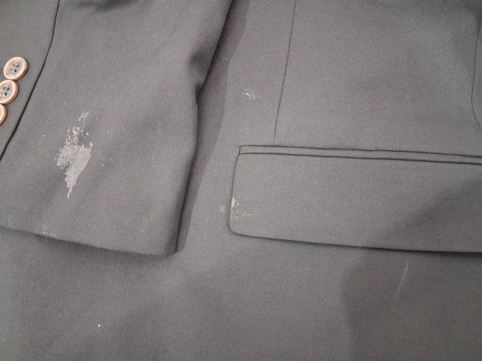 There are a couple small marks on the front/sleeve, but they should easily wash out (see photos)
