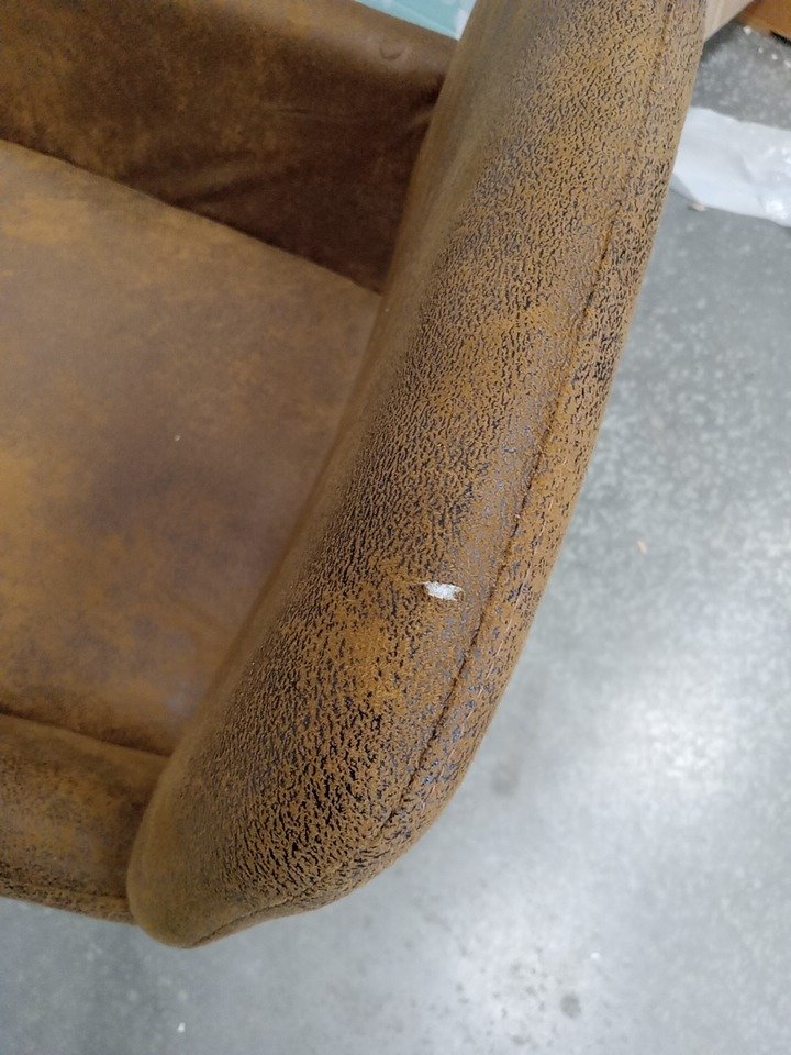 Item has dirt marks scuffs present from previous use, There is a small rip on the backrest from loose shipping/storage.