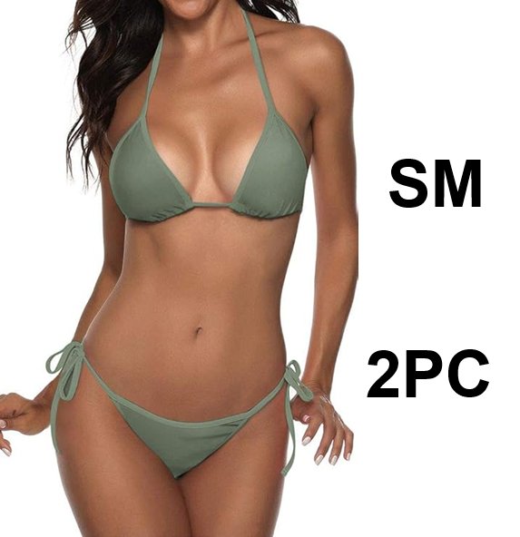 2pc women's suvimuga triangle ruched butt side tie swim suit - SMALL - army green
